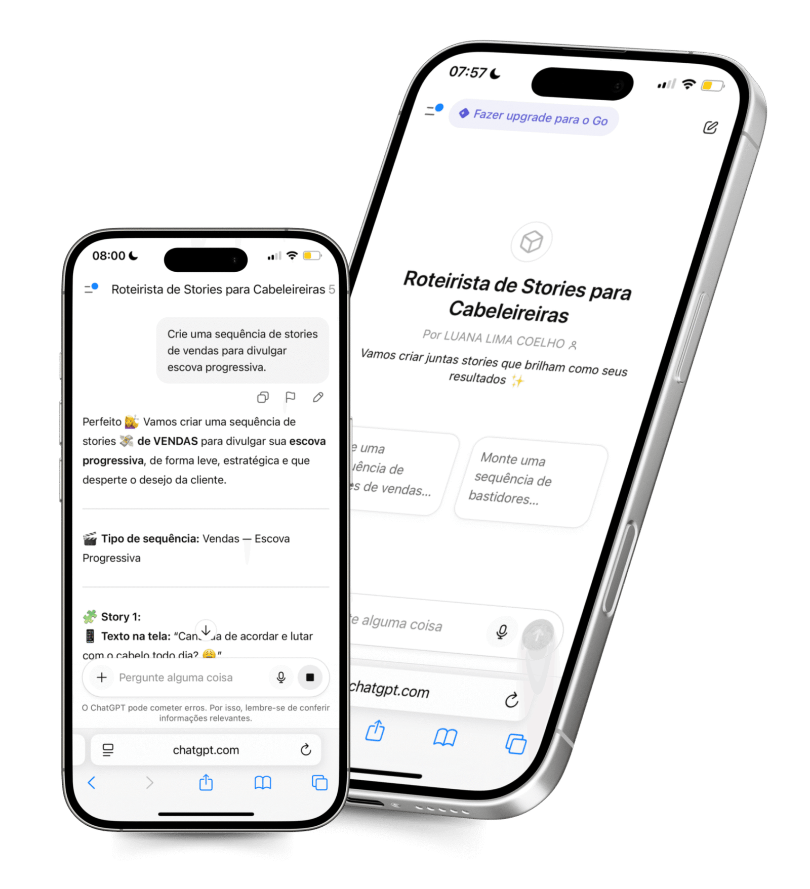 Agora, além de todo o acervo de ideias, legendas, roteiros prontos, interação e títulos, o Content Hair ganhou os GPTs da Cabeleireira — os primeiros assistentes inteligentes criados especialmente para cabeleireiras que querem ter um Instagram bonito, estratégico e sempre ativo.